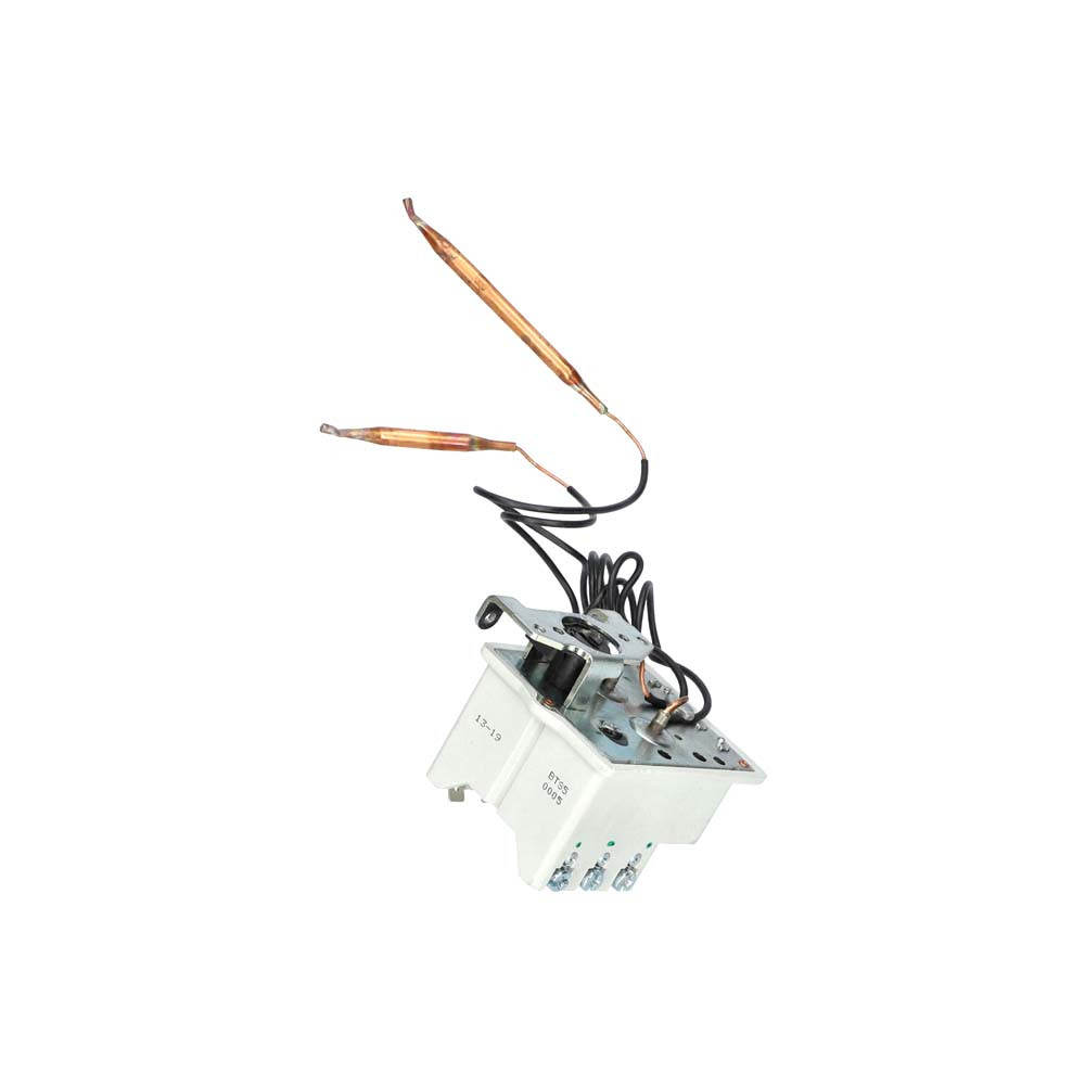 Kettős funkciót lát el: egyrészt beállítható vele a kívánt vízhőmérséklet, másrészt biztonsági korlátozóként megakadályozza a túlmelegedést. A szabályzó bimetál elven működik – a hőmérséklet emelkedésével megszakítja, lehűléskor pedig visszakapcsolja a fűtőáramkört.