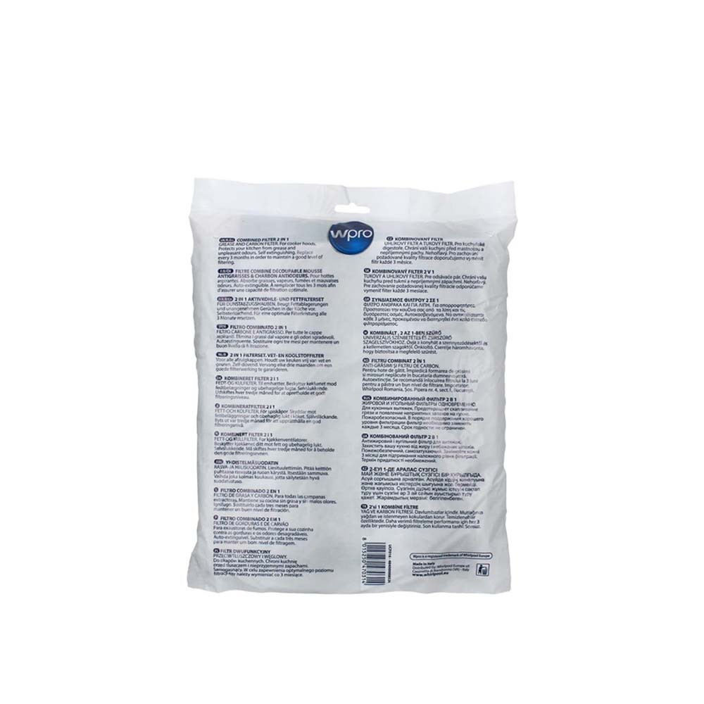 A WPRO UCF016 univerzális szén- és zsírfilter ideális megoldás, ha szeretnéd, hogy a páraelszívód mindig tisztán és hatékonyan működjön. Kettős funkciójának köszönhetően egyszerre fogja fel a főzés közben keletkező zsírrészecskéket, miközben az aktív szénréteg megszűri a kellemetlen szagokat is.